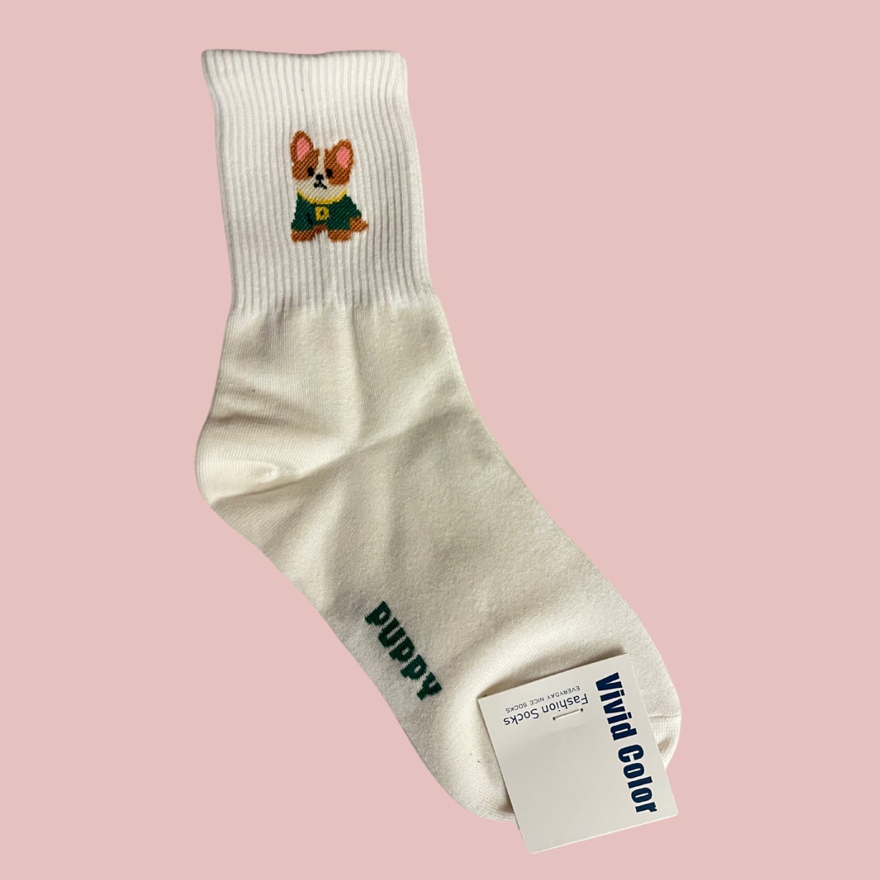 パピーコーギーのソックス 23〜25cm|ホワイト
