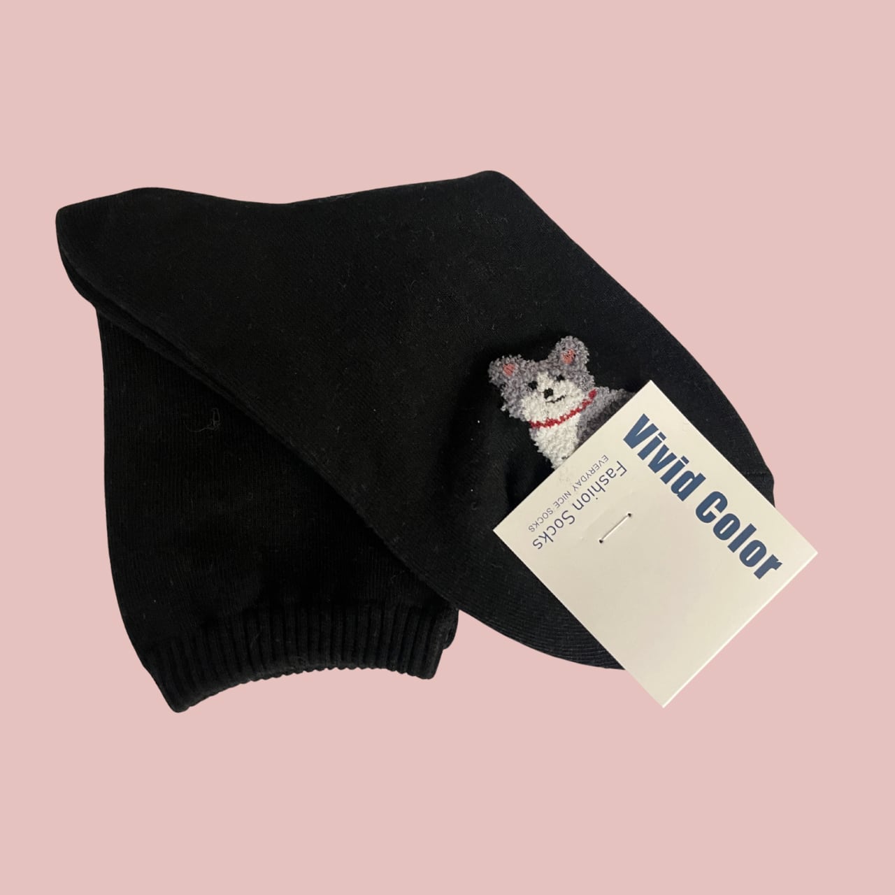 もこもこカーディガンコーギーのソックス 23〜25cm ブラック