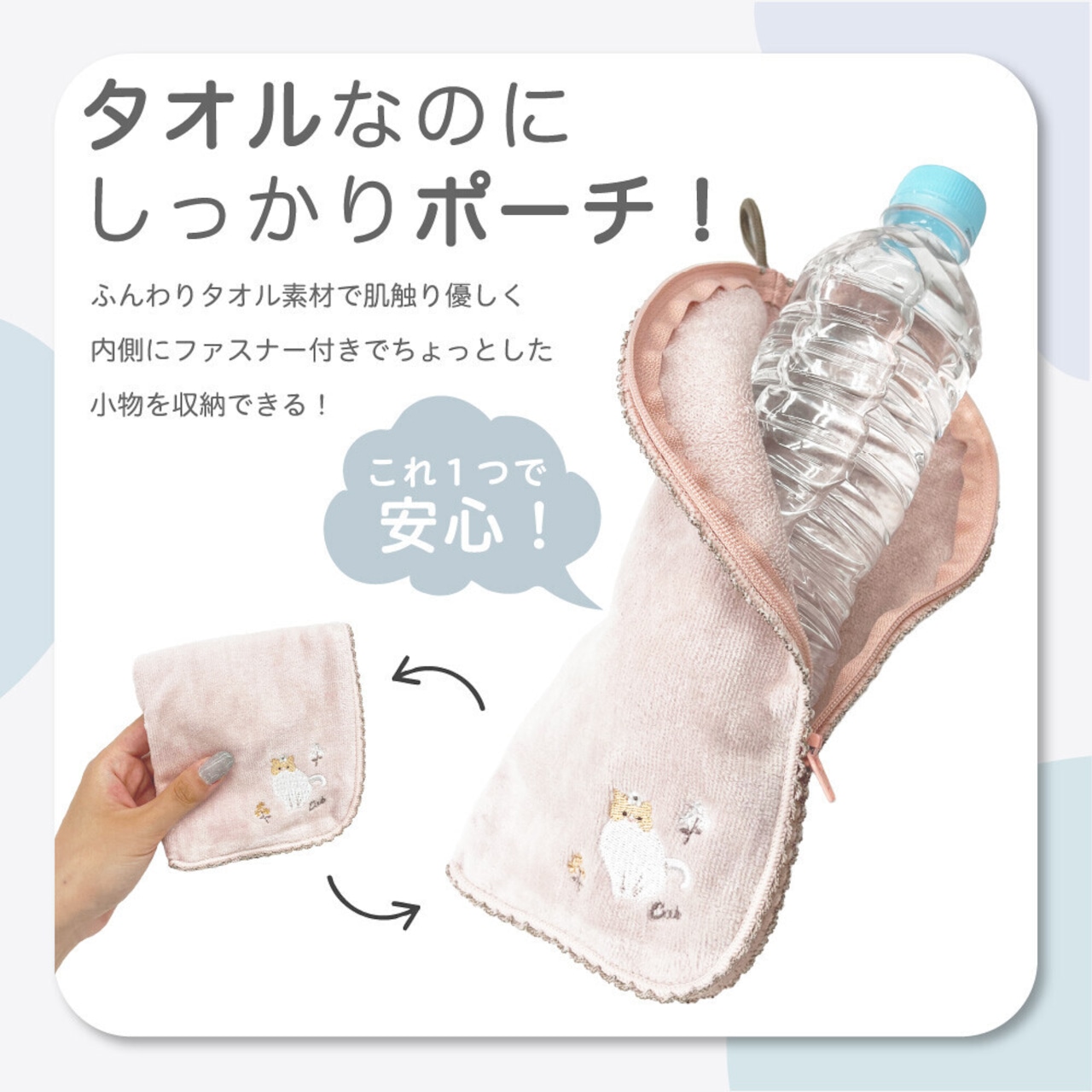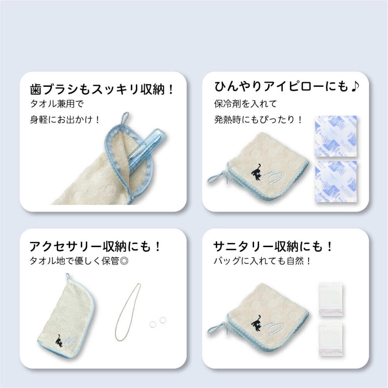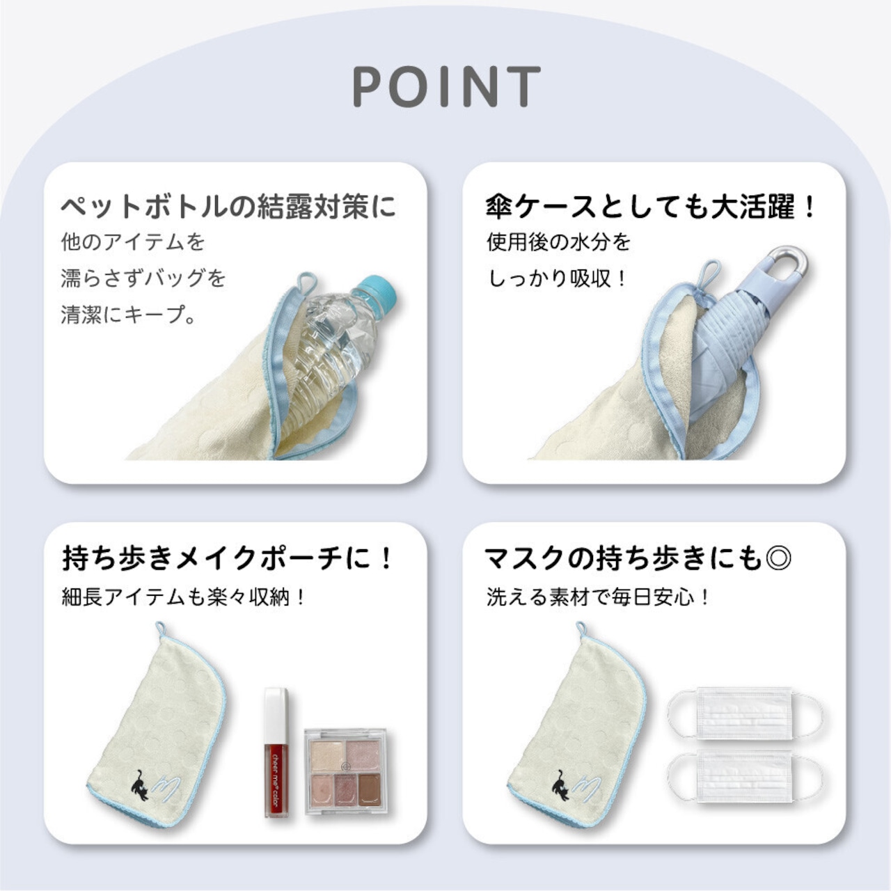 やわらかなタオル地で作られているので、吸水性が高く持ち歩きにとても便利!