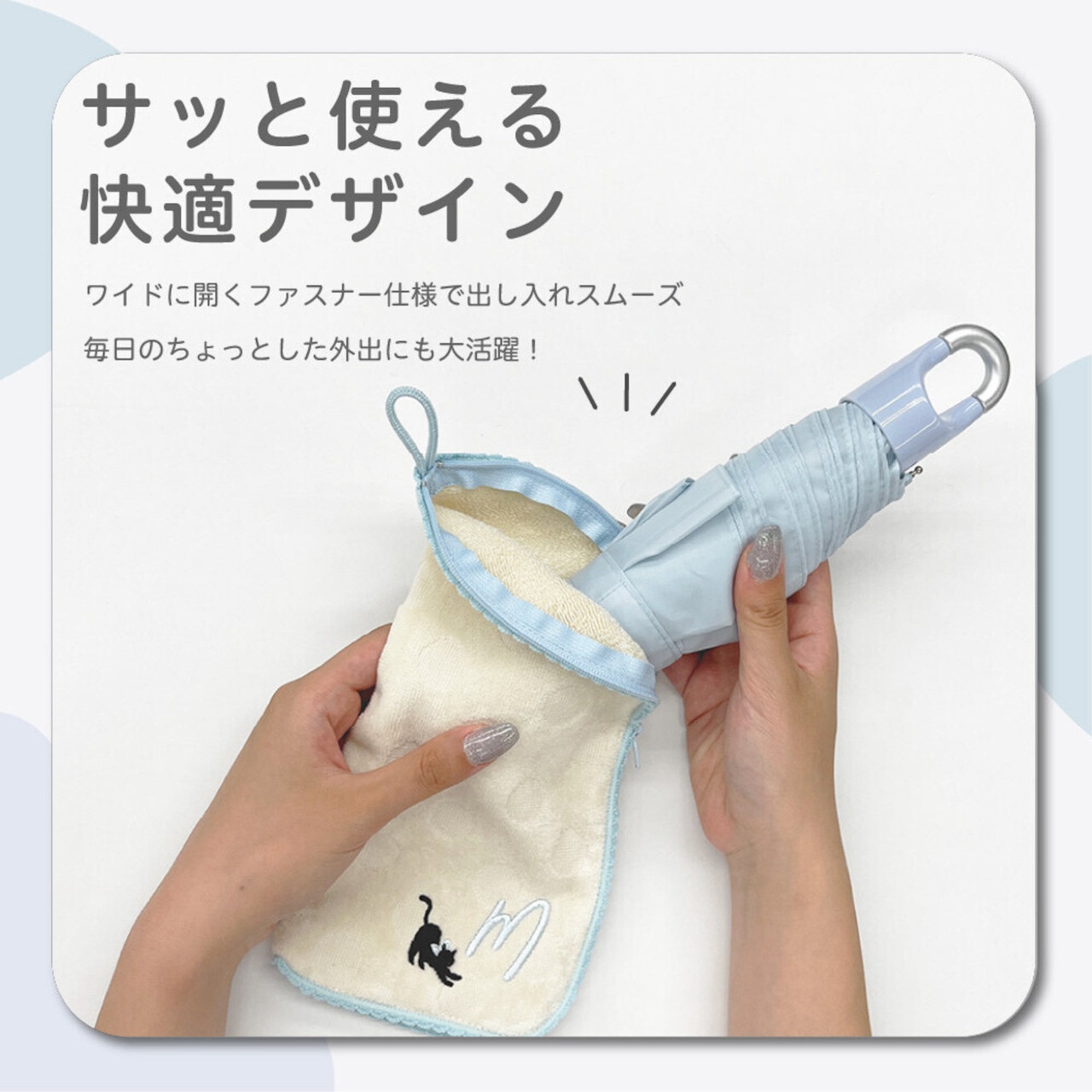 折りたたみ傘ケースにすれば使用後の水分を吸収して、他の荷物が濡れません◎