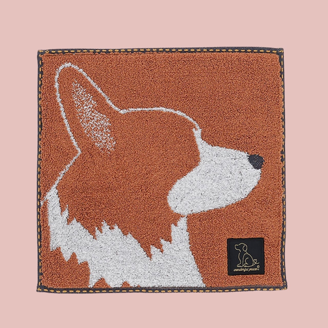 ふわふわの肌ざわりが心地よい、コーギーの横顔デザインがかわいいハンドタオルが登場いたしました♪