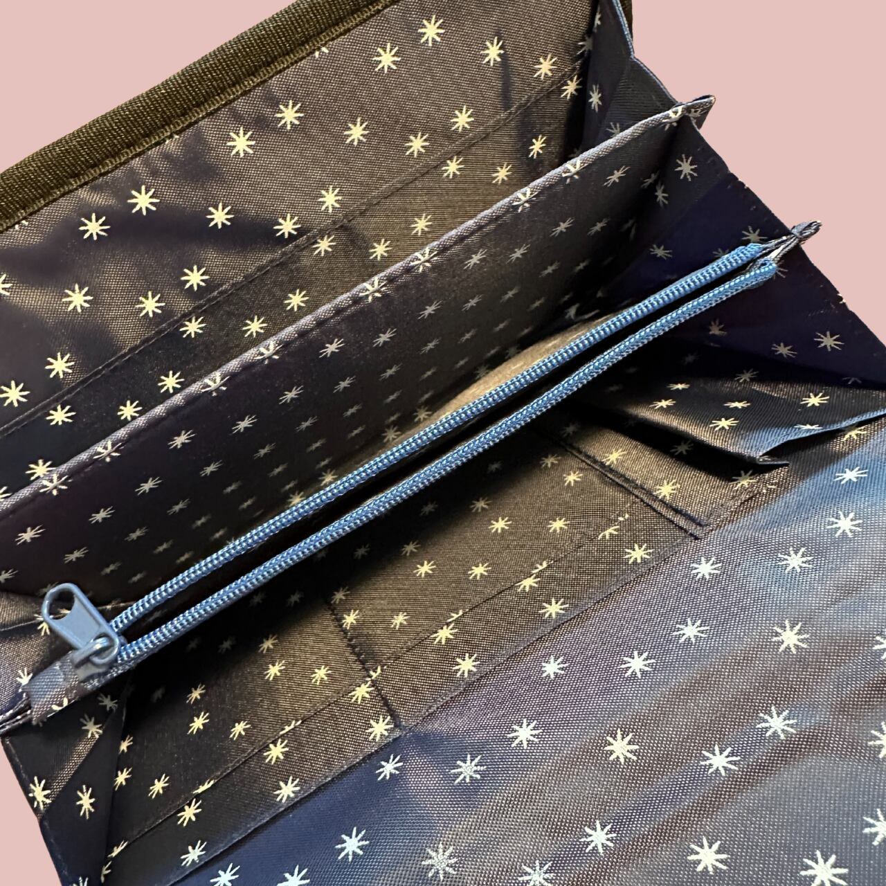 内側は星柄の裏地で、開けるたびに気分が上がるデザインです。