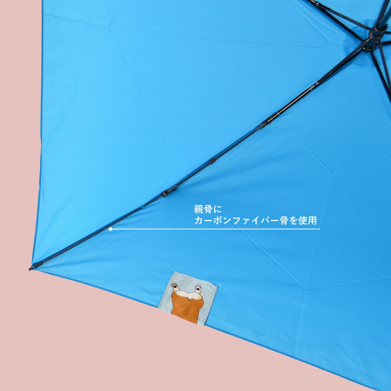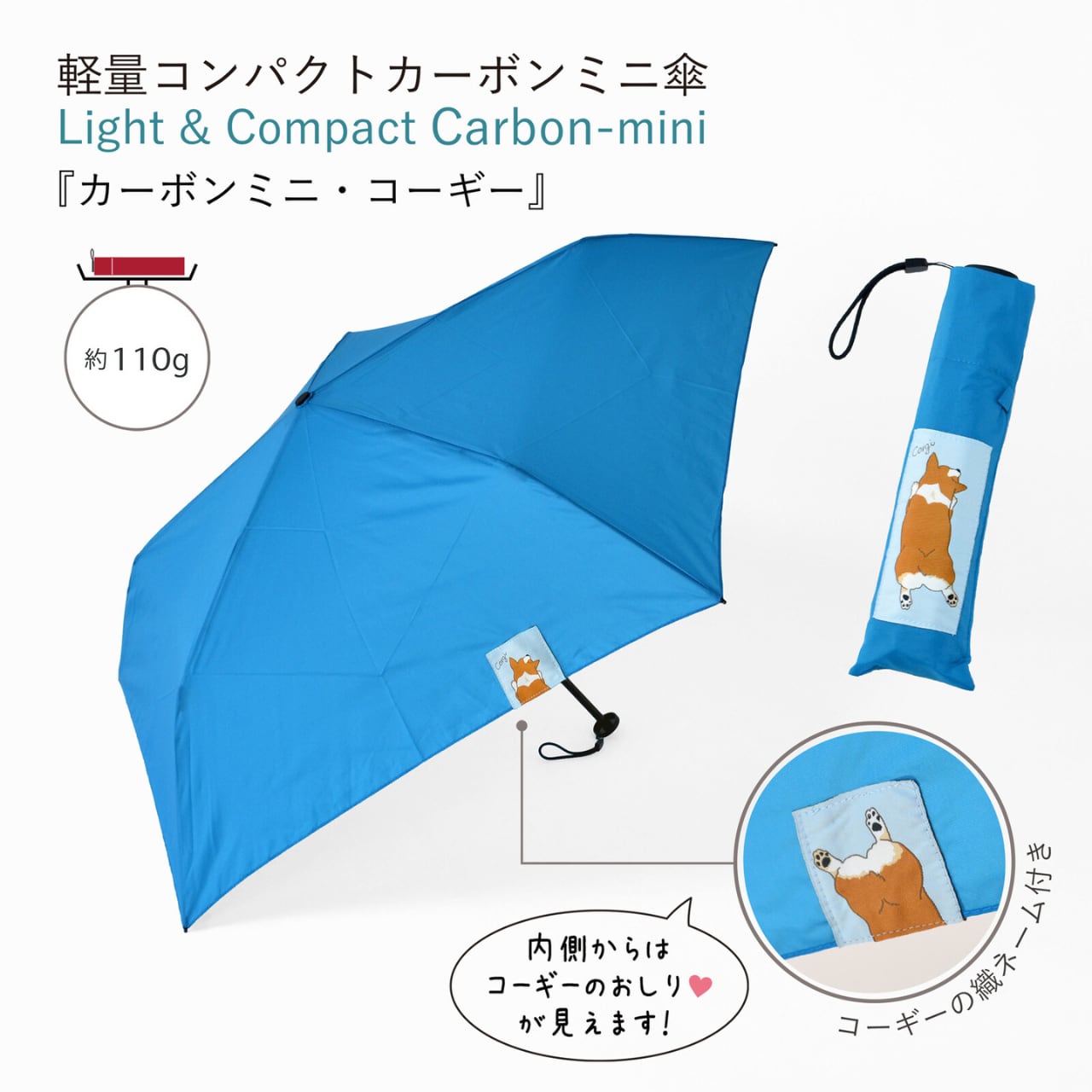 【軽量110g】50cm カーボンファイバー骨使用|超軽量コンパクト折りたたみ傘|コーギーのおしりデザイン|晴雨兼用ミニ傘