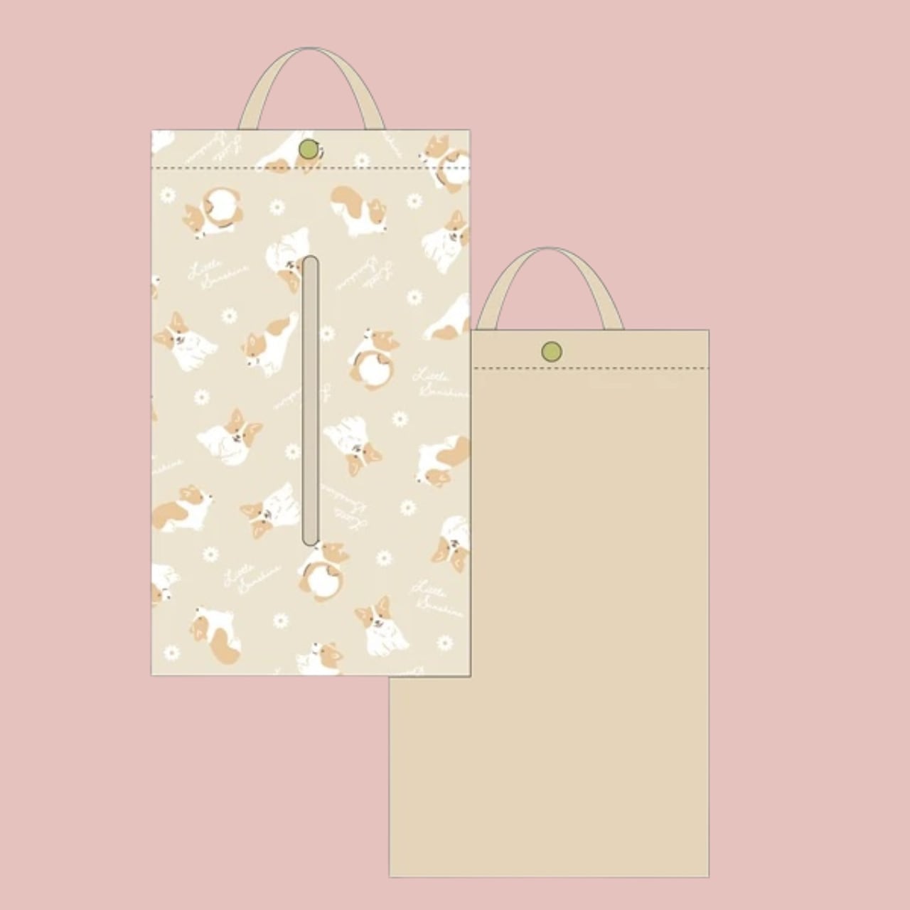 コーギー総柄 持ち手付きティッシュケース|縦型・吊り下げOK